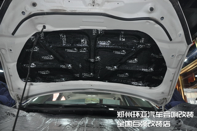 原車的引擎蓋不僅容易產(chǎn)生震動(dòng)噪音,同時(shí)發(fā)動(dòng)機(jī)產(chǎn)生的熱量影響使用壽命,改裝師對(duì)引擎蓋做了止振處理后,也對(duì)其進(jìn)行了隔熱處理。