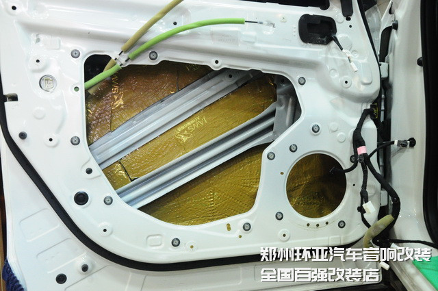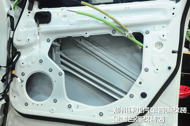 拆下門板可以看到原車的隔音措施十分簡(jiǎn)陋,并且空洞較多,這使得噪音很容易從門板部位傳入內(nèi)室。改裝師使用大白鯊隔音材料對(duì)門板進(jìn)行雙層隔音處理,大白鯊隔音材料是一款性價(jià)比極高的隔音材料,對(duì)抑制門板共振和隔絕噪音上在用戶群體有很高評(píng)價(jià),經(jīng)過隔音的門板成為一個(gè)密閉的箱體結(jié)構(gòu),不僅增強(qiáng)氣密性,還可以為喇叭工作提供良好的環(huán)境。
